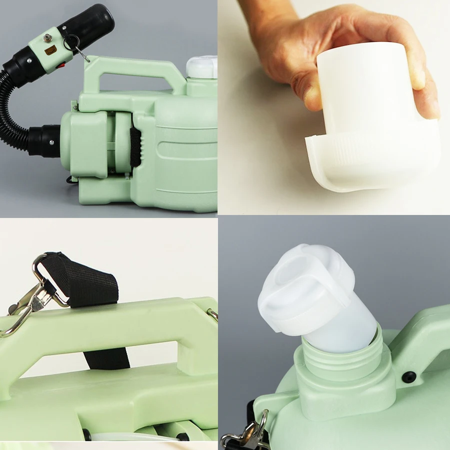 Features,Strong air supply, rapid diffusion, stable atomizationFirst, low sound, reducing work noise, silently moisturizingSecond, the capacity is five liters.Third, the material is hard, using engineering materials to extend service life,Fourth, anti-fall and wear-resistant, large amount of fog,The atomization system is high power, strong and powerful, adjustable size, humidification of crops, convenient and labor-saving1. High power motor, super speed sprayer.2. Quick spraying, solution and labor saving. 3. Rotating spraying, without any blocking. 4. Patented technology adopted to prevent the solution from flowing back after power off. 5. Easy sprayer everywhere. 6. Compared to traditional sprayers, 50% of chemical volume used can be saves.Dispensing water based chemical formulations, pesticides, deodorants, fungicides, disinfectants, poultry vaccines, odor neutralizers, ect.In addition to formaldehyde, six pollutants such as formaldehyde, benzene, toluene, xylene, and TOVC are systematically treated during the treatment.
