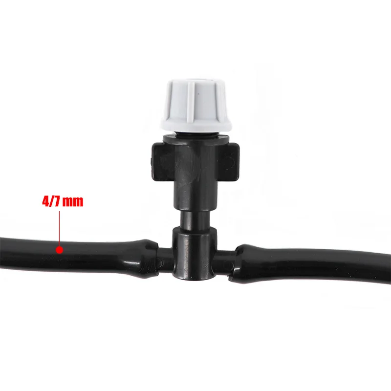 Adjustable,the misting nozzle can be adjusted to closed,misting,and spraying.Tee Connector make it reverse hook spraying,large amount of water.