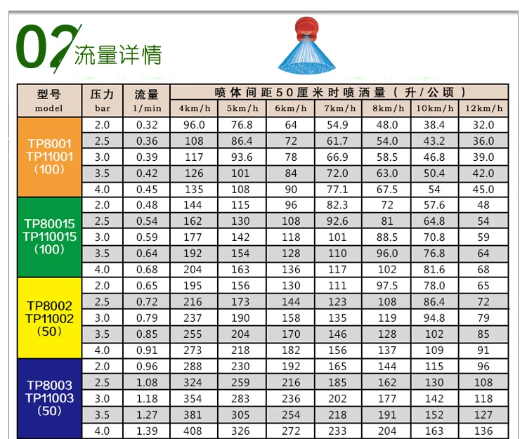 1. Drift can be reduced under low pressure and good spray coverage under high pressure;