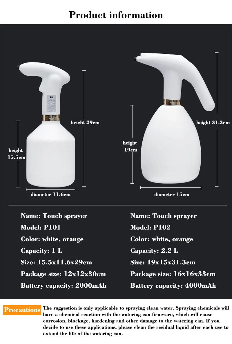 | Electric Nozzle Spray Can Smart Sensing Plant Sprayer Bottle Water Fog Spray Head Plastic Mist Nozzle Watering Can for Flowers |