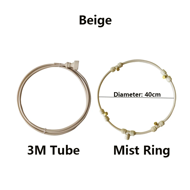 3M PE Tube1x pcs Diameter 40cm mist ring4x pcs Brass Nozzles4x pcs Nozzle Fitting1x pcs 3/4' female facuet Connector10 x pcs cable ties