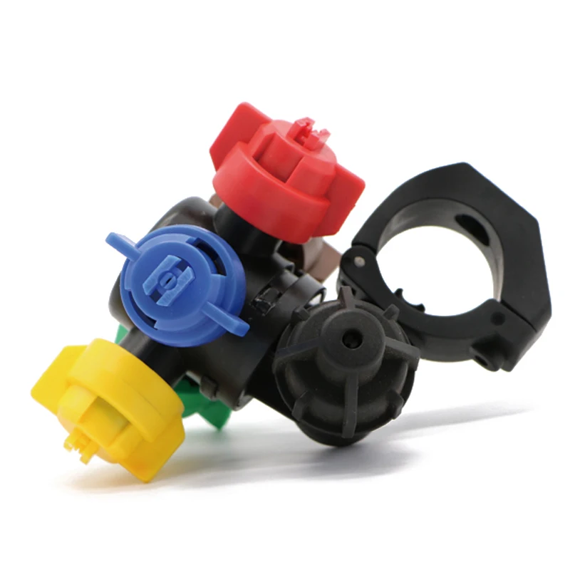 agriculture multi head sprayer with clamp is consist of nozzle body, nozzle filter, quick connect cap, and nozzle tip.