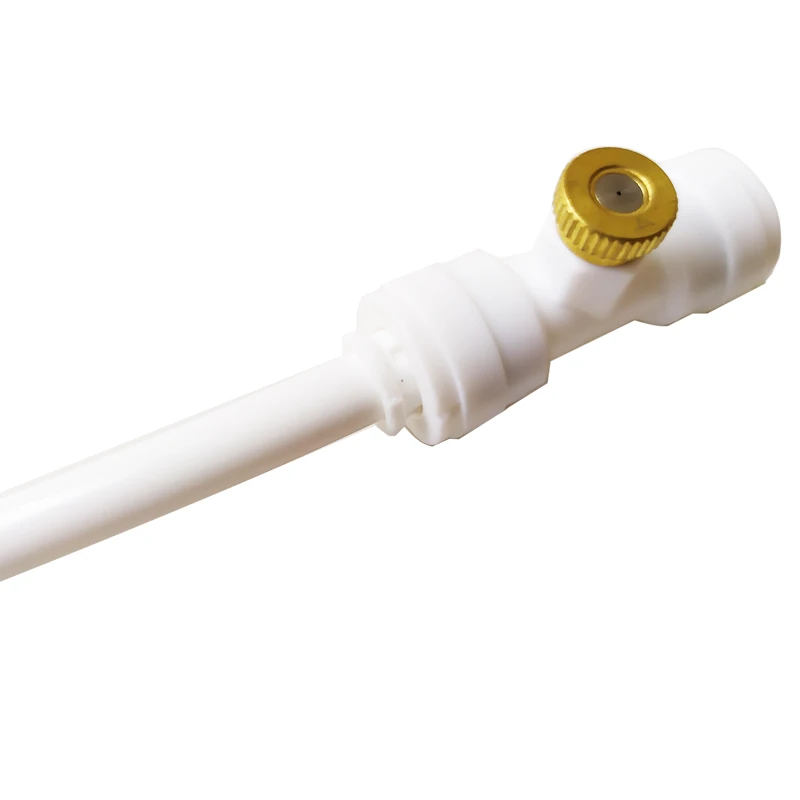 Type: SprayersMetal Type: BrassThread: 10/24UNCFlowing Rate: 0.03-2L/MinNozzle Size: 0.4mmWorking pressure: 3-20 BarApplication: Cooling and HumidificationMaterial: Plastic Nozzle Fitting and Brass NozzleFit with 6.35mm water hose and 10/24'' female thread nozzles
