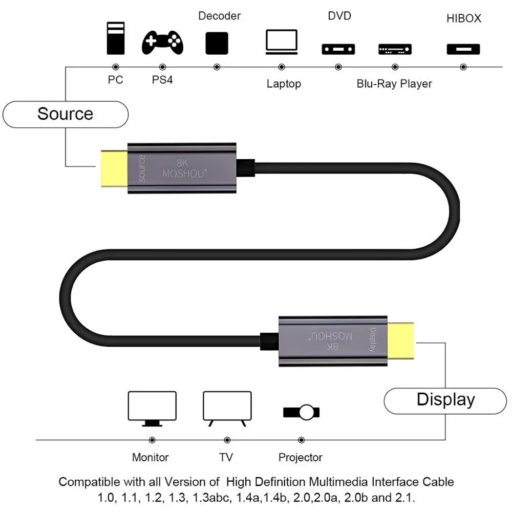 8K Optical Fiber HDMI 2.1 Cable ARC HDR 4K 120Hz MOSHOU High-Definition Multimedia Video Cable for PS4 Apple TV AmplifierBuy Now On Aliexpress