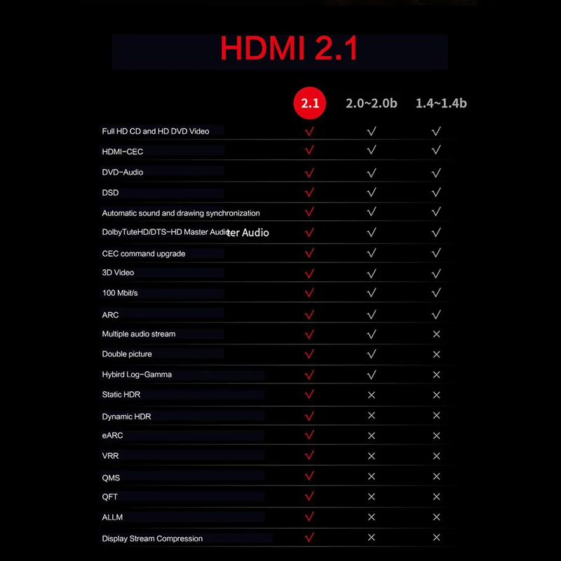 - ★Please make sure your devices support 4K&8K★ 【newest Optical Fiber 8K HDMI Cable】 HDMI 2.1 port extends the bandwidth to 48 Gbps. Support 8K@60 Hz, 4K@120Hz, UHD, FHD, 3D, Ethernet, Audio Return Channel, HDR 4:4:4 color format ,48 bit/px color depth. 4X clear compared with 1080p. HDMI 2.1 technology is backwards compatible with HDMI 2.0b/2.0a/2.0/1.4/1.3/1.2/1.1.