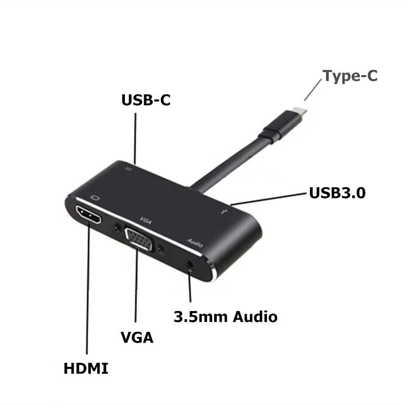 | Rankman USB 3.1 Type-C to 4K HDMI VGA USB 3.0 USB-C Hub 3.5 Audio Adapter for MacBook Samsung S9 Dex Huawei P30 TV Projector |