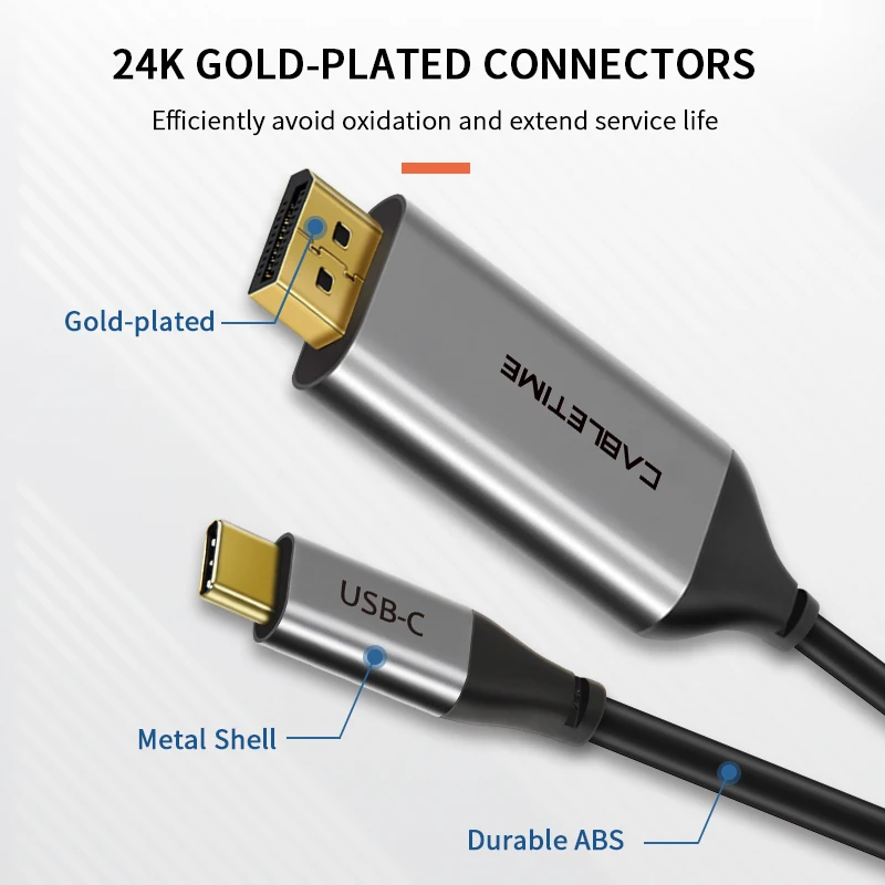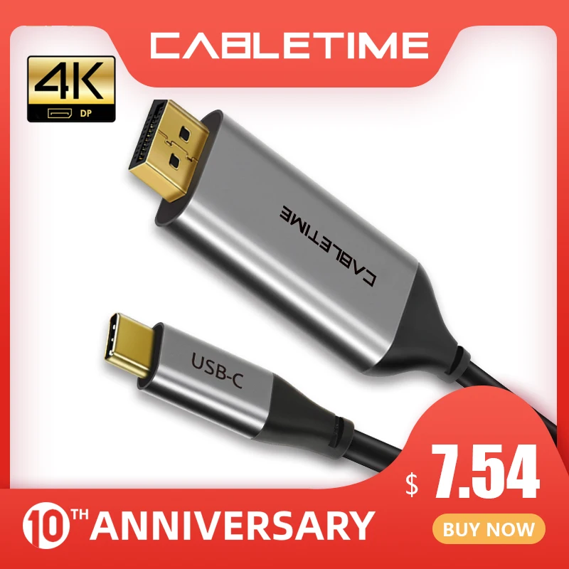 | Cabletime Thunderbolt 3 USB C DisplayPort Cable 4K 60Hz USB Type C 3.1 to DP Adapter USB to DP UHD External Video N308 |