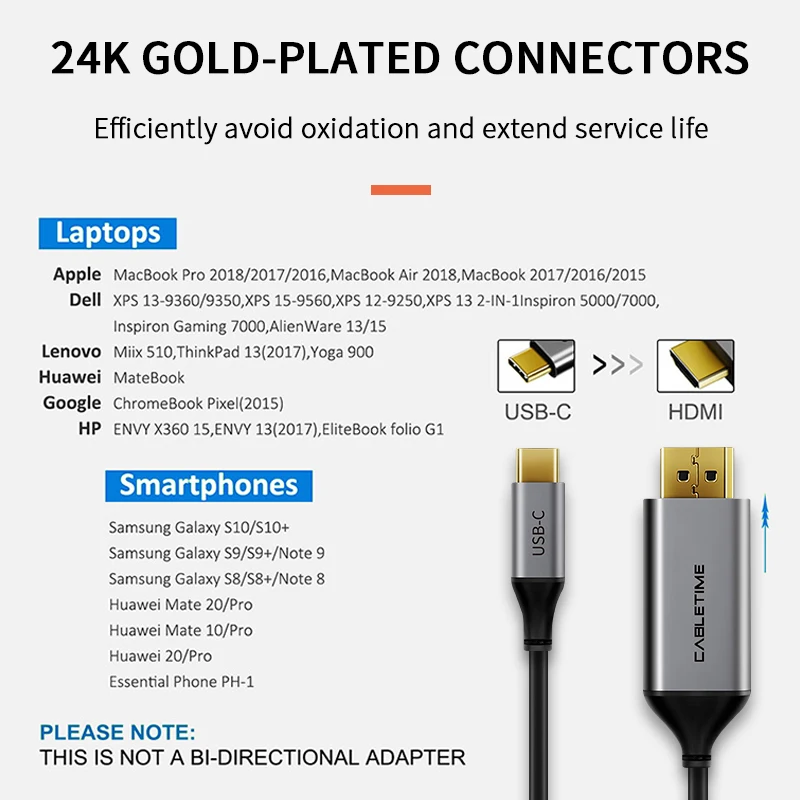 CABLETIME Thunderbolt 3 USB Type C HDMI Cable USB C to HDMI Converter for MacBook Huawei Mate 30 Pro USB-C HDMI Adapter C261