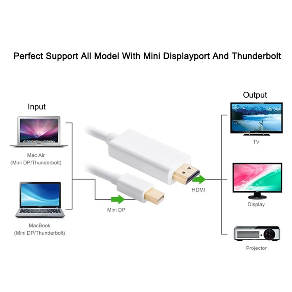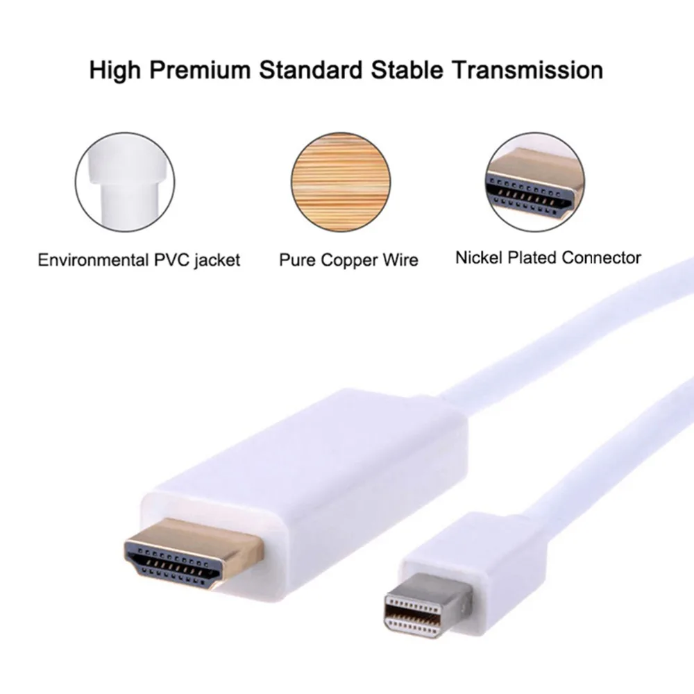 Thunderbolt Mini Dp Display To Hdmi Cable Male To Male Adapter For Macbook Pro Air Camera Tv Projector Support 4K * K 3D