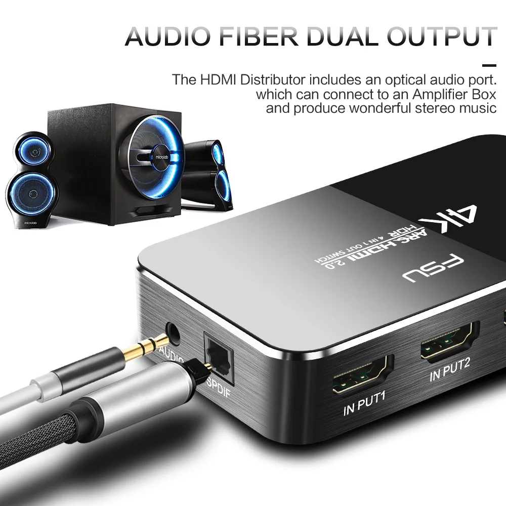 FSU UHD HDMI Switch 2.0 4K HDR 4x1 Adapter Switcher with Audio Extractor 3.5 jack optical fiber cable ARC splitter for HDTV PS4