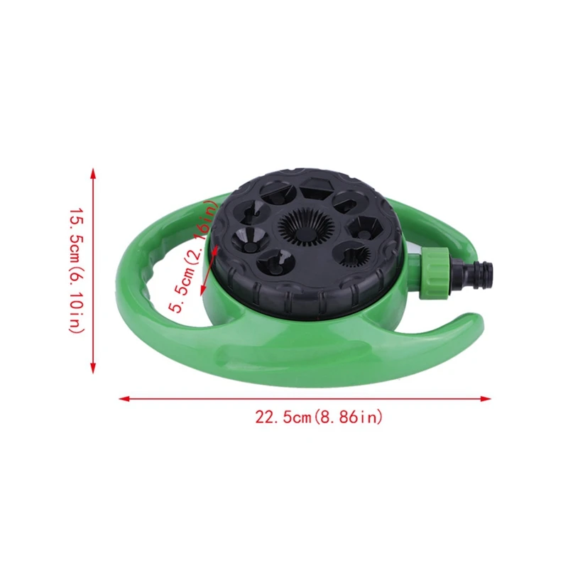 The garden water sprinkler is made from premium ABS, eco-friendly, sturdy and durable. It has 9 sprinkler heads for different irrigation effect according to your needs. Easy to use and save time, good irrigation tool for your gardening.