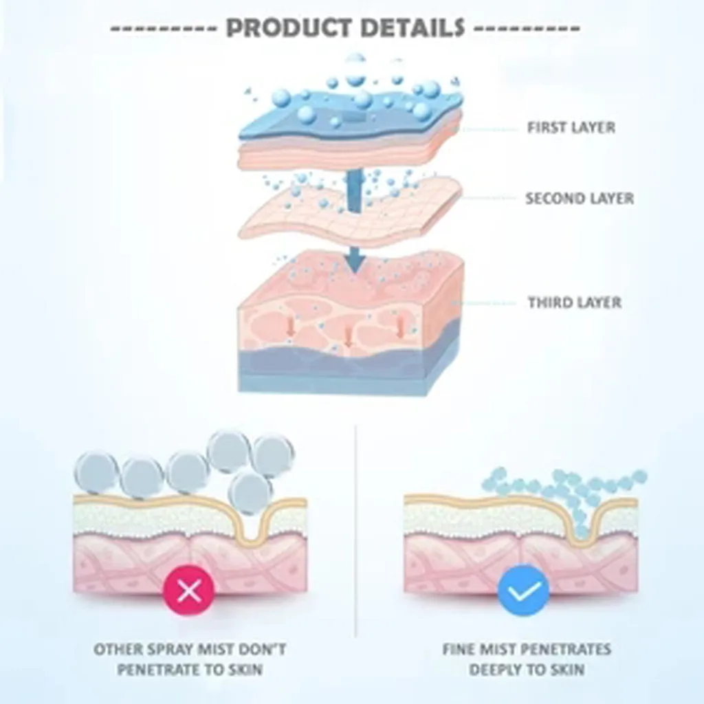 Nanoparticles: Produce a fine mist, penetrate deeply into the skin, moisturize the skin without damaging the makeup.