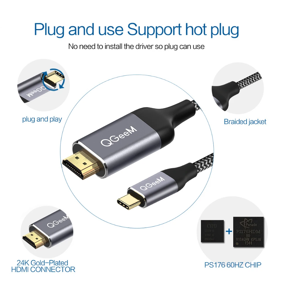 QGeeM usb c To dvi cable type c to dvi adapter Thunderbolt Compatible for MacBook Pro 2016 2017,galaxy S8 Note8,huawei mate 10Buy Now On Aliexpress