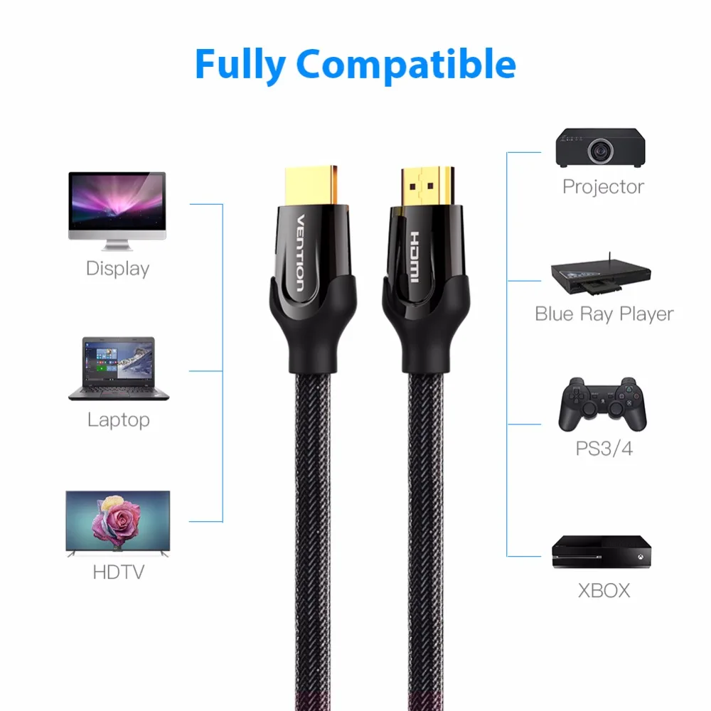 Vention HDMI Cable HDMI to HDMI Cable 4K HDMI 2.0 3D 60FPS Cable for Splitter Switch TV LCD Laptop PS3 Projector Computer CableBuy Now On Aliexpress