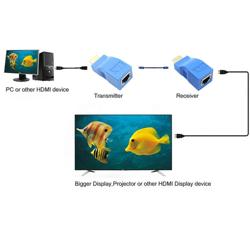 | 1 Pair RJ45 Ports 4k HDMI Extender HDMI Extension to 30m Over CAT5e Cat6 Network Ethernet LAN Adapter for HDTV HDPC DVD PS3 STB |