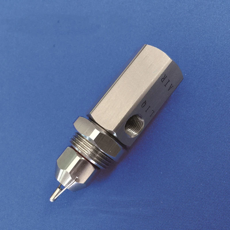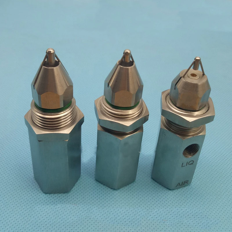 In fact, the advantage is that the front end of the nozzle is equipped with a specially designed ultrasonic generator. Using the fluid to hit the energy of the metal at a high speed, the ultrasonic generator is oscillated at a high frequency, and the atomized droplets are microatomized again. Compared with the general two-fluid nozzle, This series of ultrasonic atomization nozzles produce more uniform particle size and better atomization effect