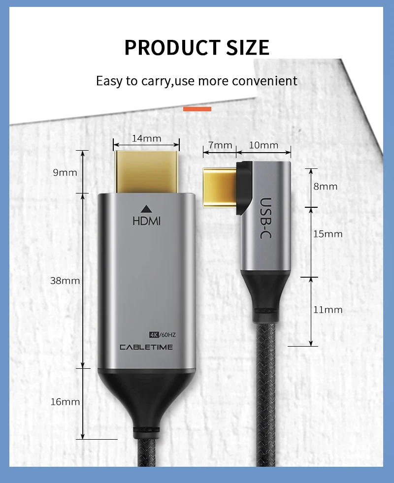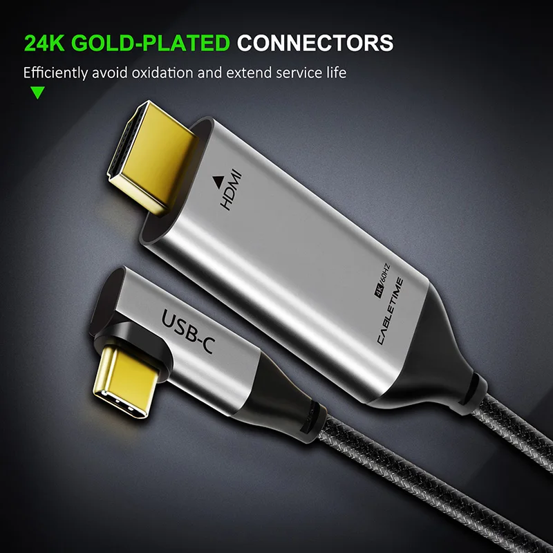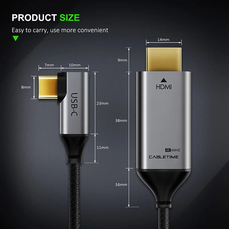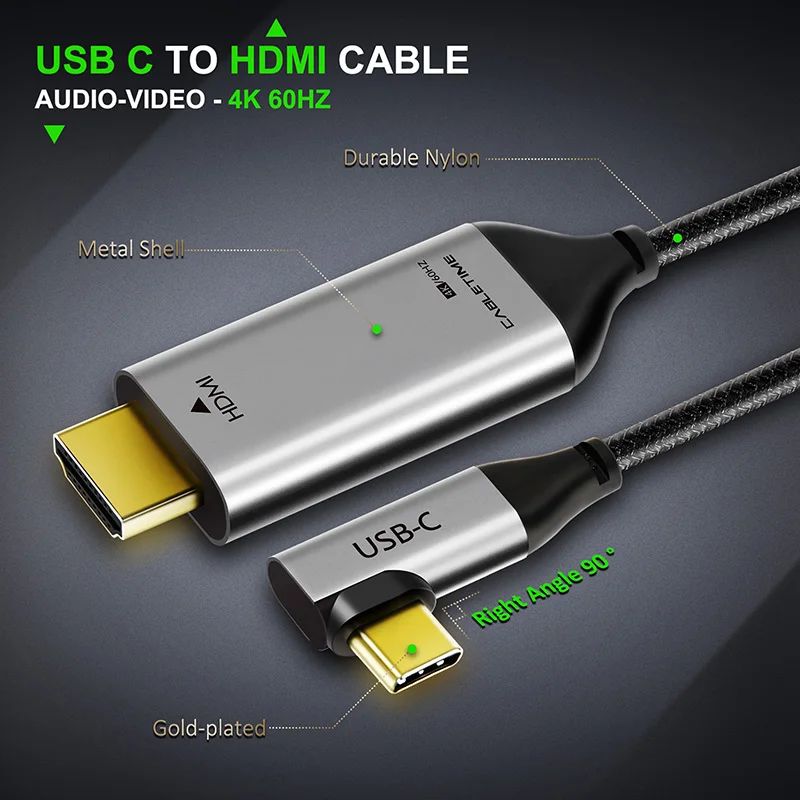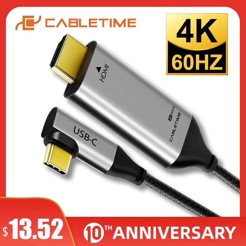 | 2020 CABLETIME USB C to HDMI 90degree Cable Adapter Type C to HDMI 4K 60Hz for Huawei Mate30/20 P30/20 Pro Samsung Xiaomi C030 |