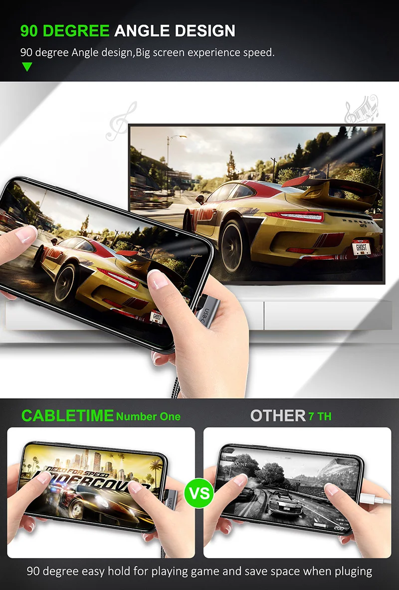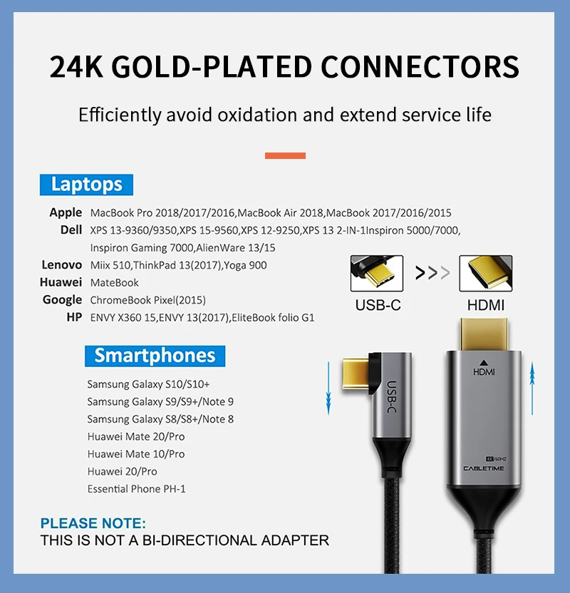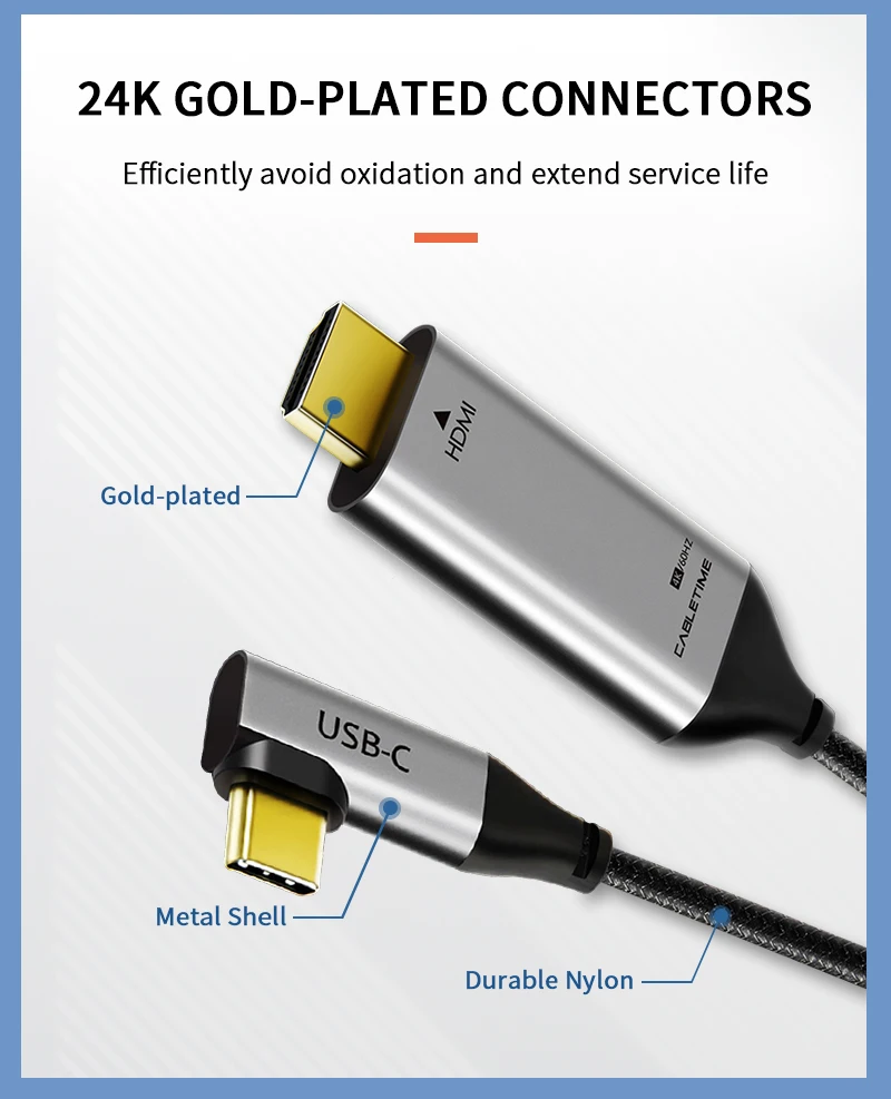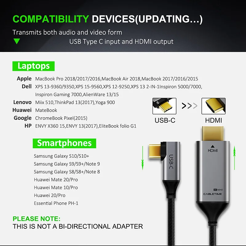 | 2020 CABLETIME USB C to HDMI 90degree Cable Adapter Type C to HDMI 4K 60Hz for Huawei Mate30/20 P30/20 Pro Samsung Xiaomi C030 |