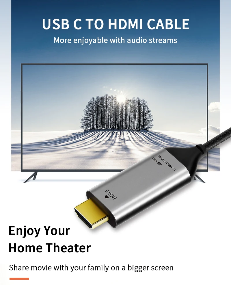 CABLETIME USB C to HDMI Cable 4k hdmi cable 4K 60Hz Type C HDMI Thunderbolt 3 for Samsung Huawei mate 20 Book pro USB-C HDM C029