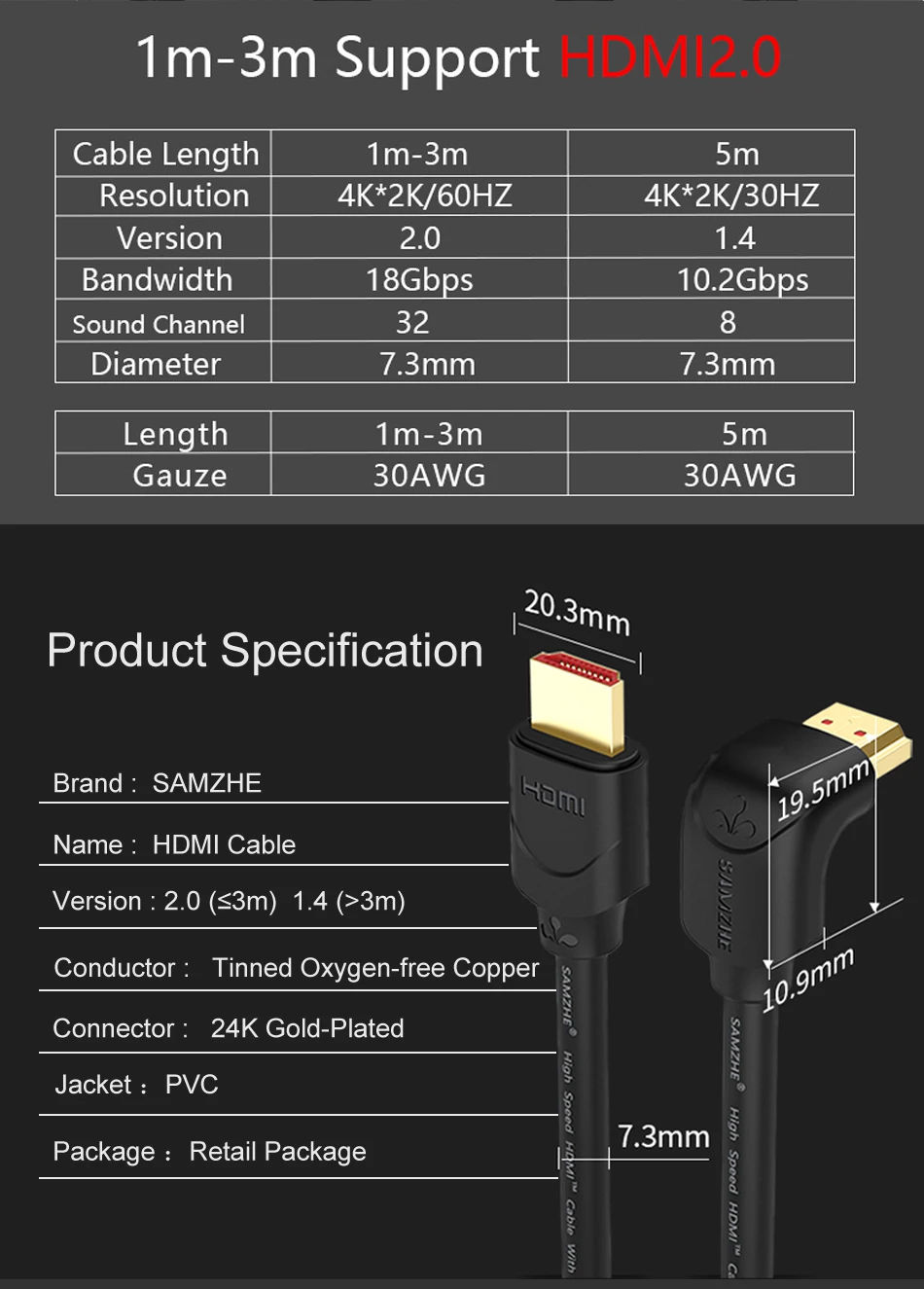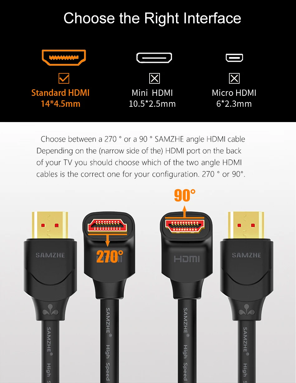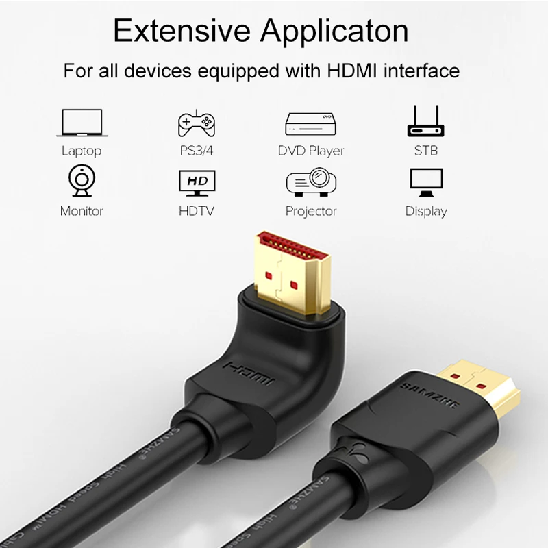 SAMZHE 4K HDMI 2.0 Cable 90/270 Degree Angle HDMI to HDMI Cable 2K*4K 1M 1.5M 2M 3M 5M 1080P 3D for TV PC Projector PS3 PS4