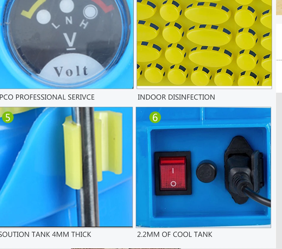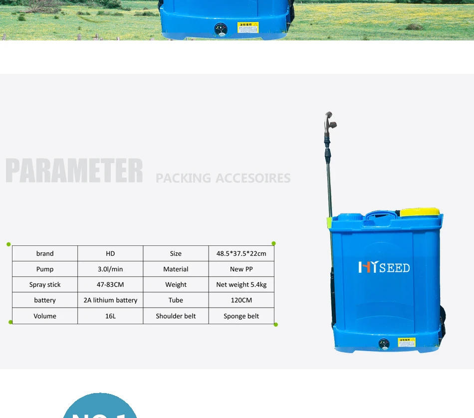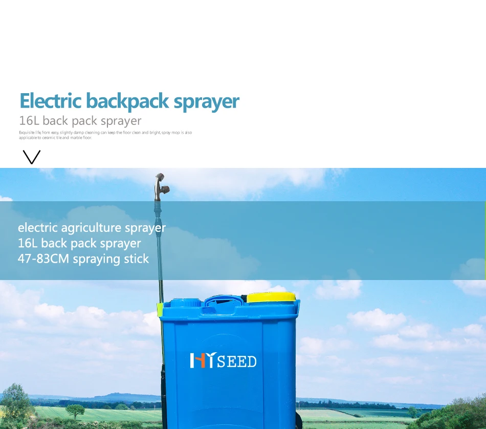 brand HD Size 48.5*37.5*22cmPump 3.0l/min Material New PPSpray stick 47-83CM Weight Net weight 5.4kgbattery 2A lithium battery Tube 120CMVolume 16L Shoulder belt Sponge belt