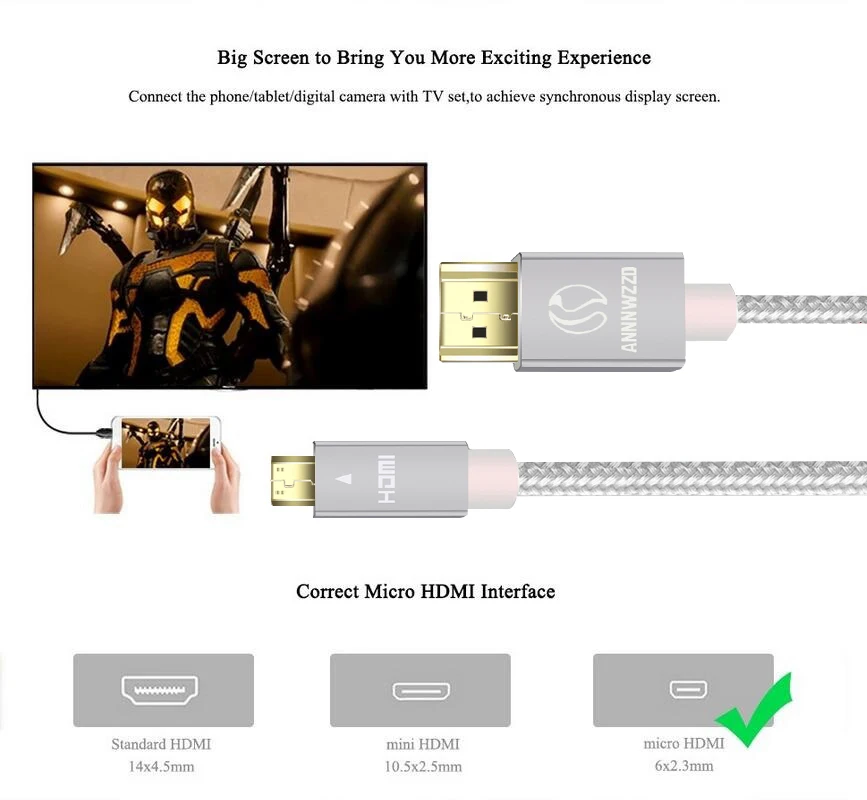 | ANNNWZZD Micro hdmi cable Gold-Plated 1.4 Micro HDMI to HDMI Cable High-Speed HDTV Cable Supports Ethernet, 3D, 4K |