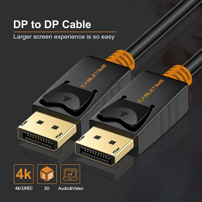 | CABLETIME DisplayPort Cable 1M Male to Male DP 1.2 Cable DP Vedio Audio 4k 60hz Display port Cable 2M for HDTV Projector PC C071 |