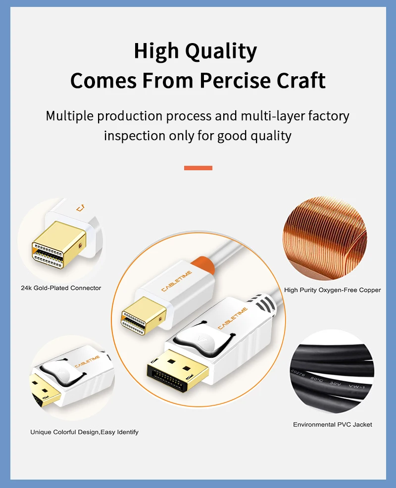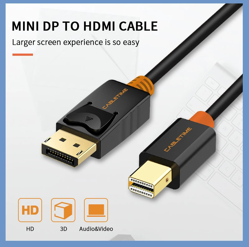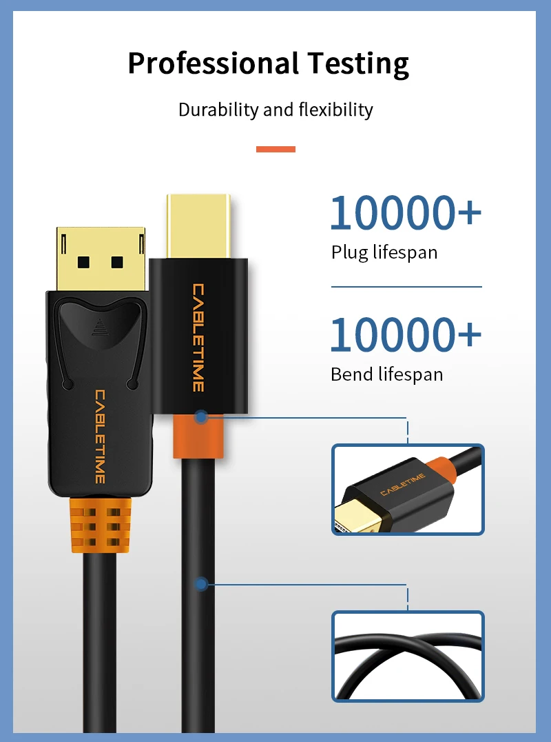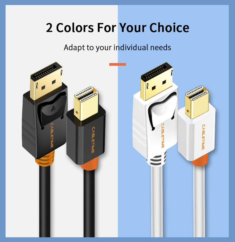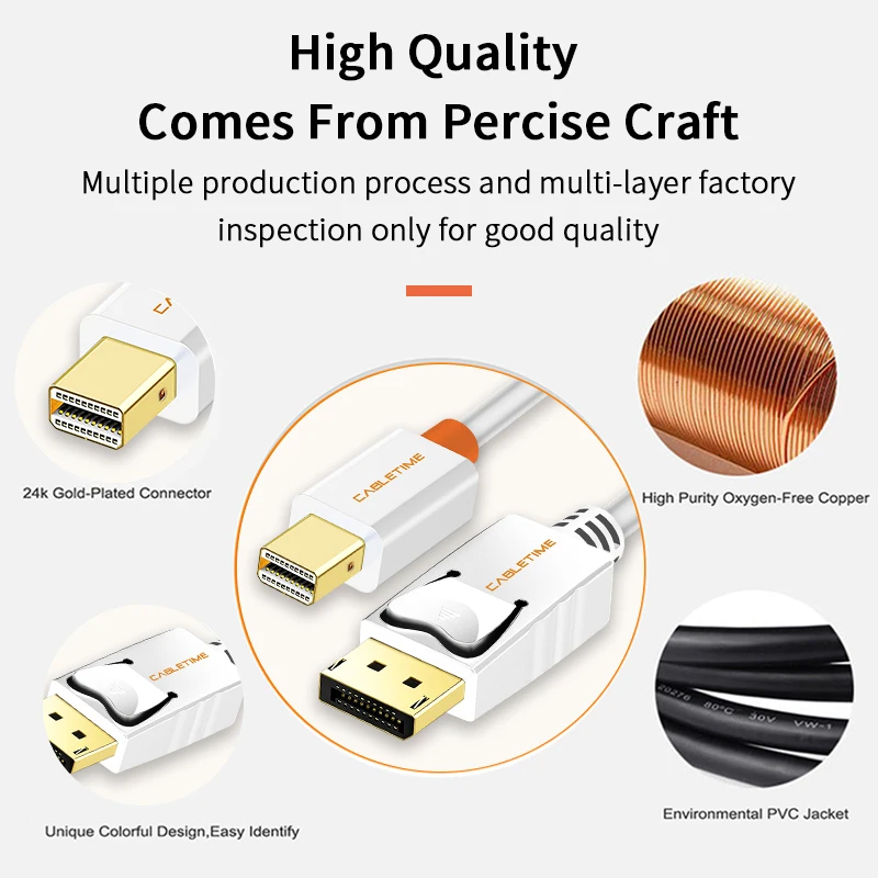 | Cabletime Mini Display Port to Display Port Cable mini dp to dp Thunderbolt to DP 4K Cable For Macbook Surface Pro N024 |