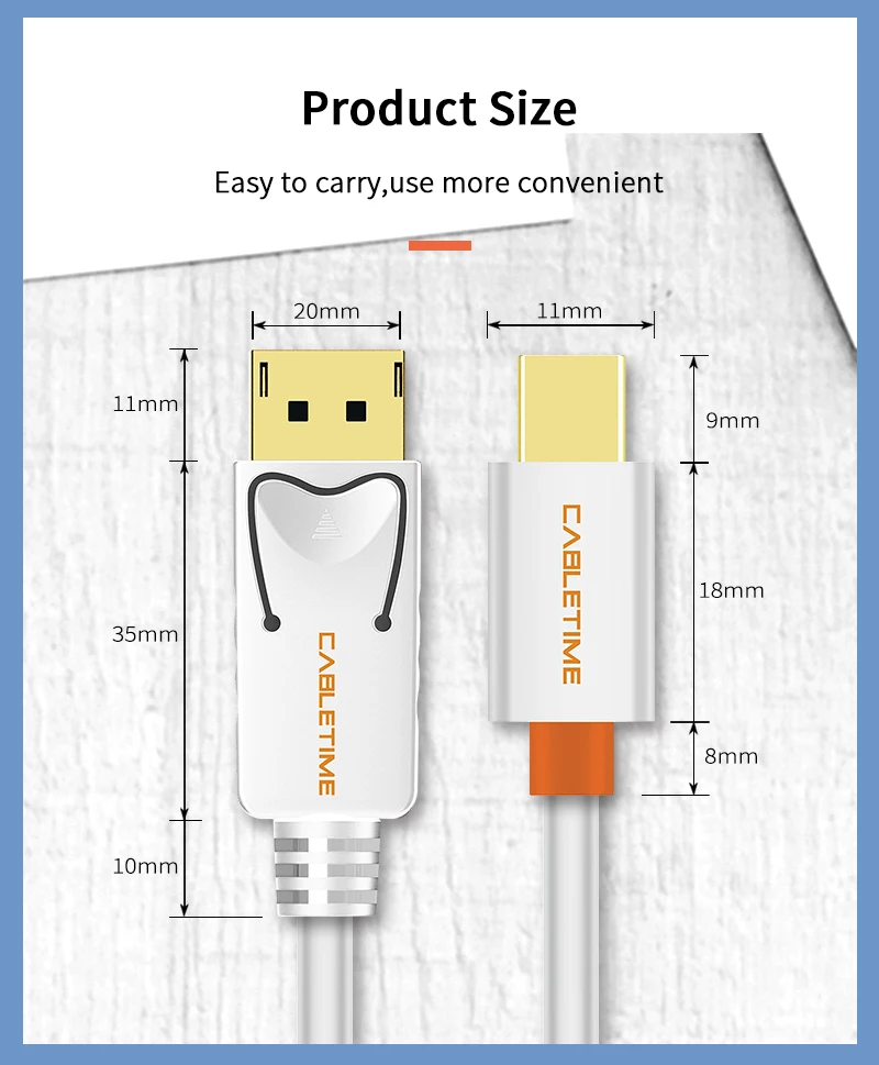 Cabletime Thunderbolt 3 USB C DisplayPort Cable 4K 60Hz USB Type C 3.1 to DP Adapter USB to DP UHD External Video N308Buy Now On Aliexpress