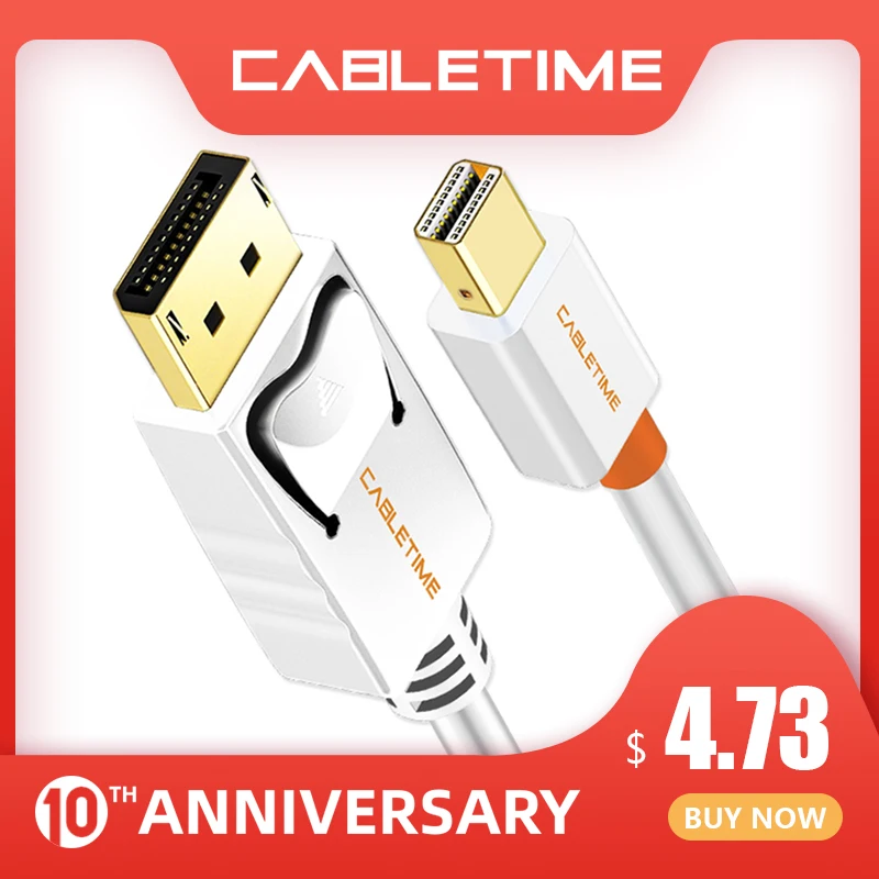 Best Price Comparison With Cabletime Mini Display Port to Display Port Cable mini dp to dp Thunderbolt to DP 4K Cable For Macbook Surface Pro N024