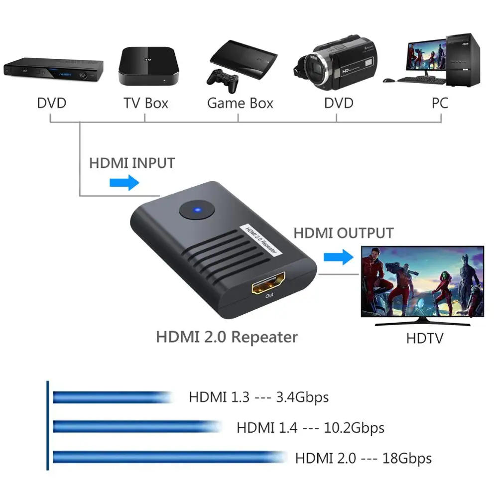| Neoteck Mini HDMI 2.0 Repeater Support 4K 60Hz HDR 4: 4: 4 HDMI Repeater 60M 4K 2160P 3D HDMI 2.0 Extender Booster Adapter |