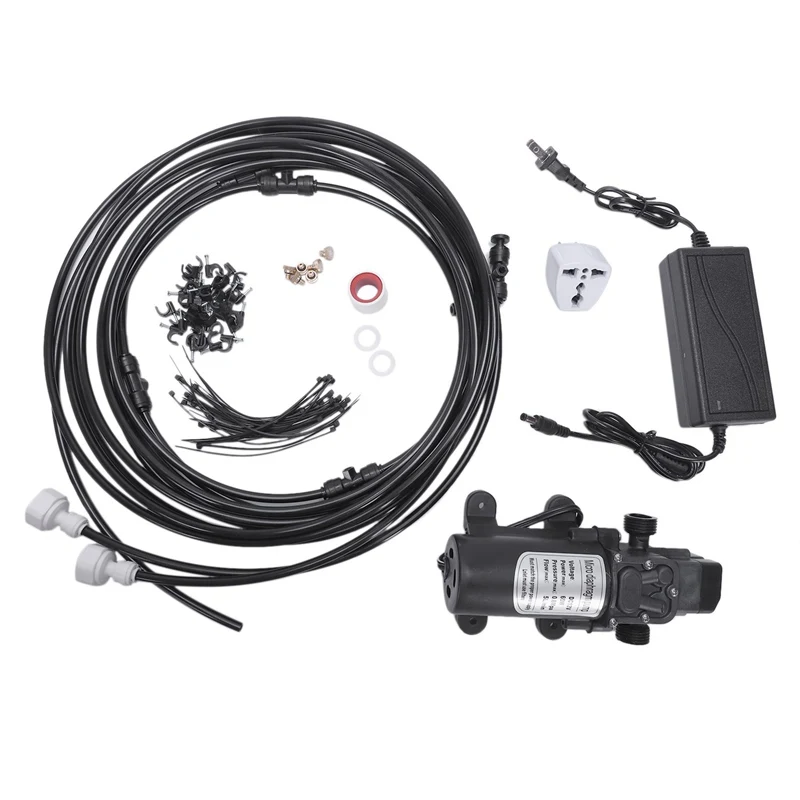 S228 Water pump set 12V misting motor with 12M mist system 16pcs nozzles mister for patio outdoor cooling system
