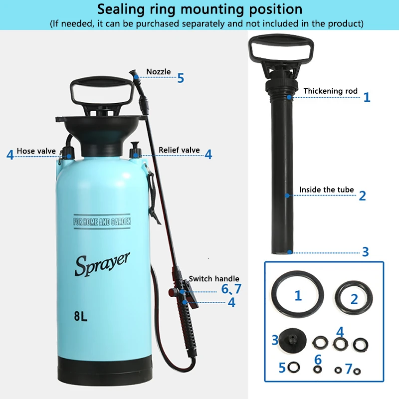 | 3/5/8L Pressure Sprayer Air Compression Pump Hand Pressure Sprayers Spray Bottle Nozzles Spray Accessories Seal Ring Rubber Ring |