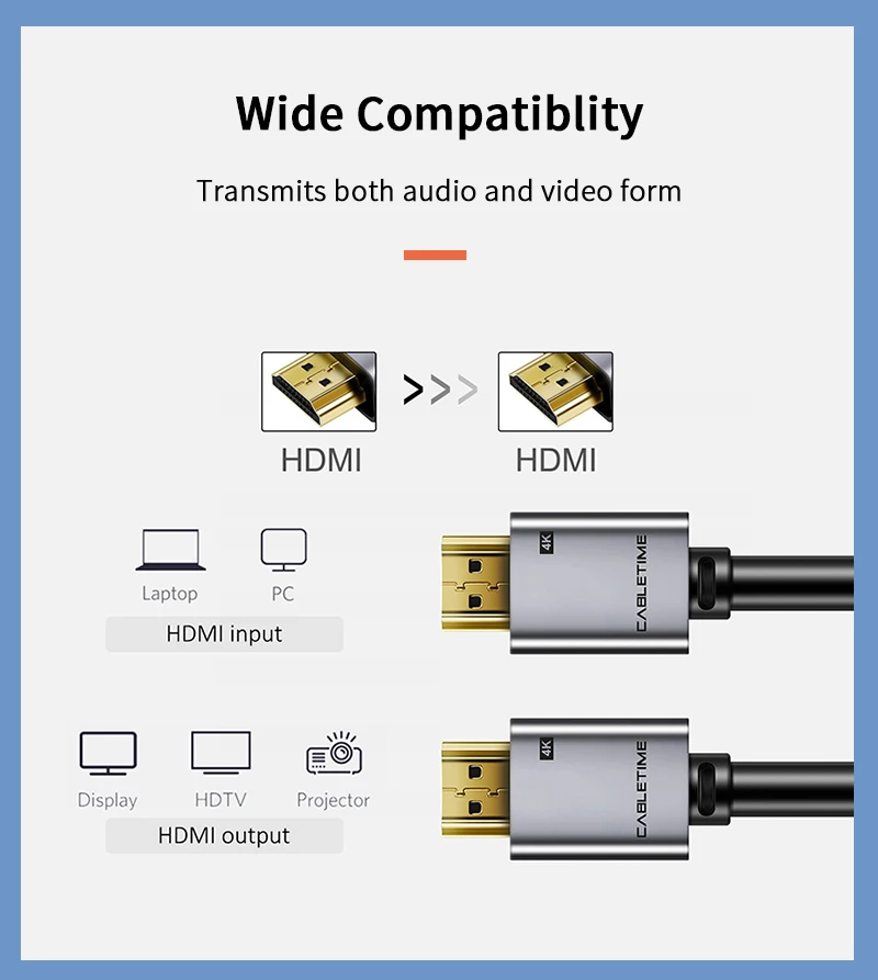 | CABLETIME 4K HDMI Cable HDMI to HDMI 2.0 Cable Cord for PS4 TV 4K 60HZ Splitter Switch Box hdmi 4k cable Video Cable HD C248 |
