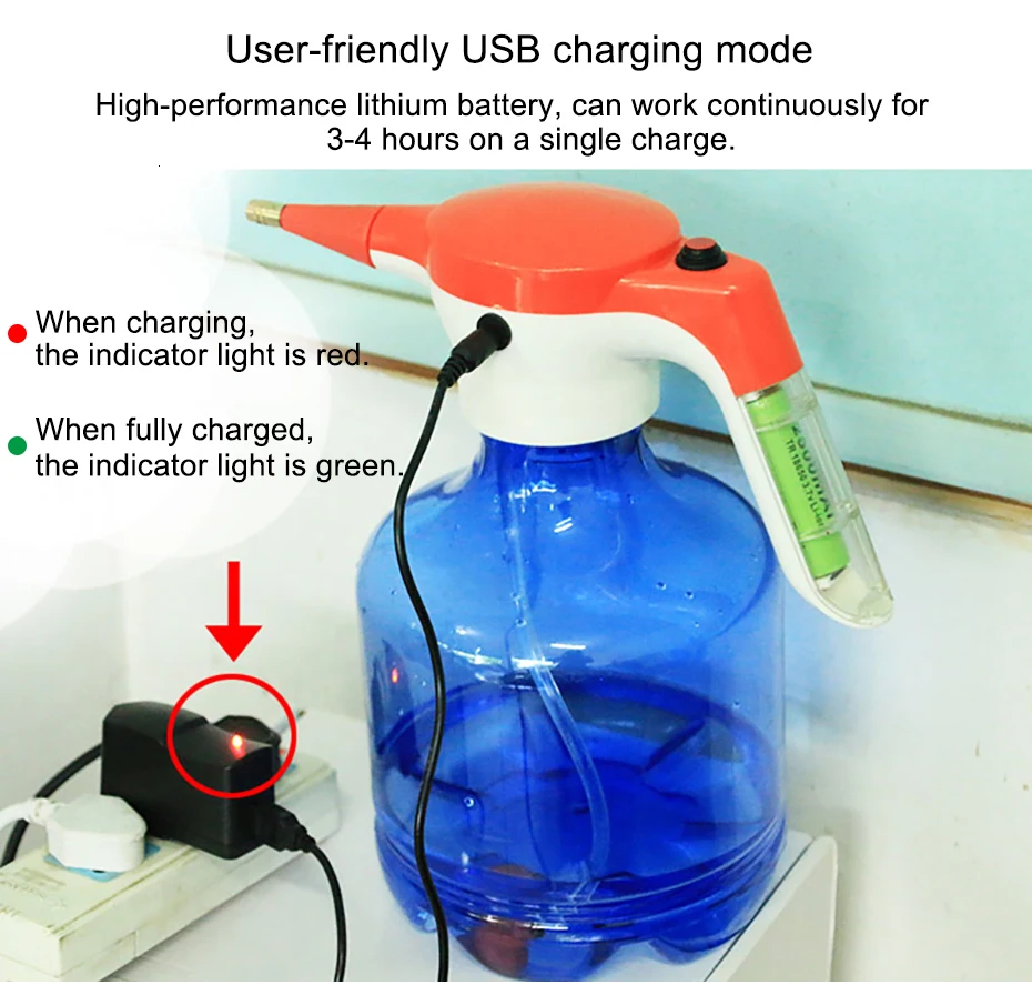 2L Capacity Hand-held Electric Spray Pot Portable Mist Nozzle Watering Can Sprayer Bottle Water Gardening Tools Extension Rod