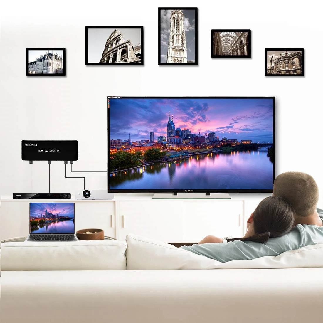 Unnlink HDMI Switch 7X1 HDMI 2.0 UHD4K@60Hz HDCP 2.2 HDR 7 In 1 Out with IR Remote for Smart TV MI Box3 PS4 Projector