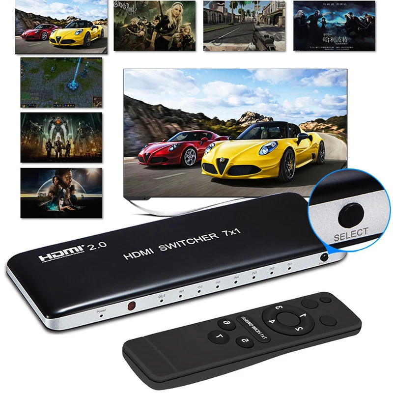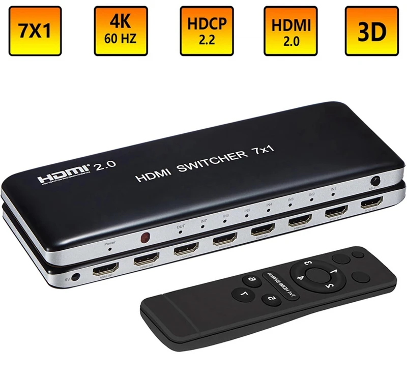 7X1 HDMI Switch HDMI 2.0 4K 60Hz HDCP 2.2 3D HD Video Converter for Xbox One PS3 PS4 Smart TV Mi Box Computer PC To TV Projector