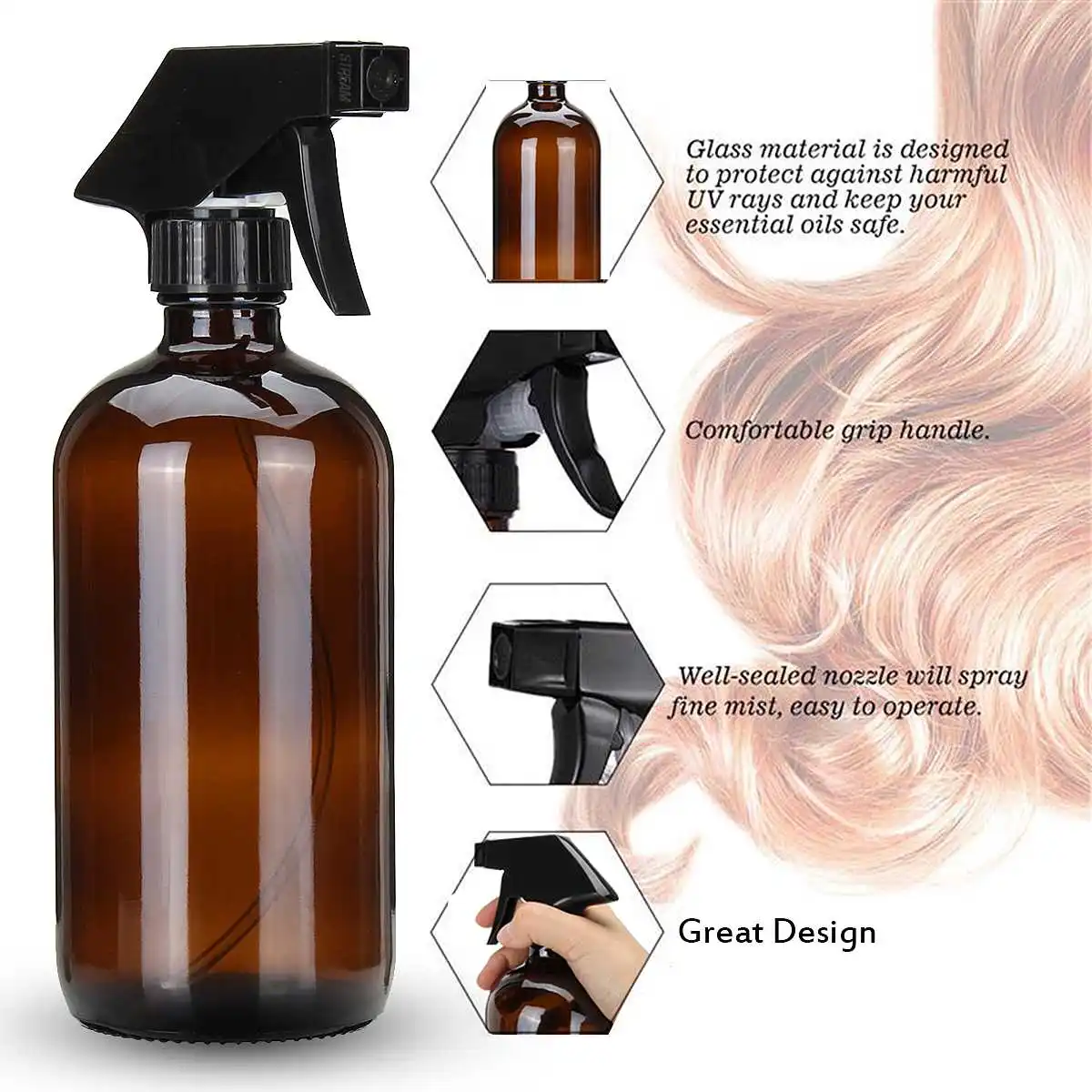 | 500ml 16OZ Amber Glass Spray Bottles With Trigger Sprayer Essential Oil Aromatherapy Empty Cosmetic Container Cleaning Gardening |