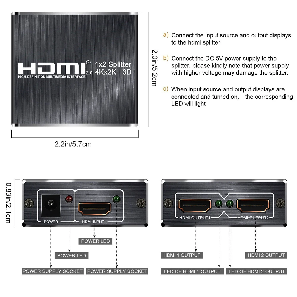 | New ZY-HS20A UHD HDMI 2.0 Splitter 1x2 4K 60Hz HDMI 2.0 Splitter HDCP 1.4 Splitter HDMI 2.0 4K 1 In 2 Out For PS4 XBox Projector |