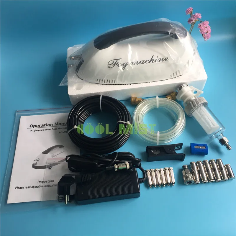 | S354 Dry fog patio misting system set 0.2L mini portable fog machine and 6pcs mist nozzles 10M 1/4 nylon tubing water sprayers |