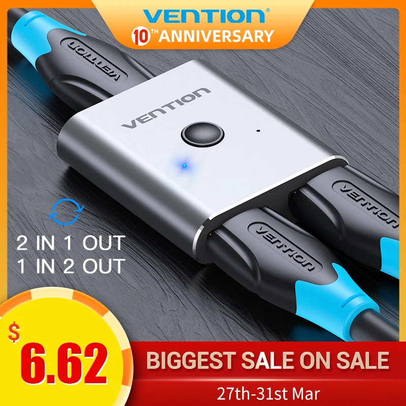| Vention HDMI Switcher 4K Bi-Direction 2.0 HDMI Switch 1x2/2x1 Adapter 2 in 1 out Converter for PS4 Pro/4/3 TV Box HDMI Splitter |