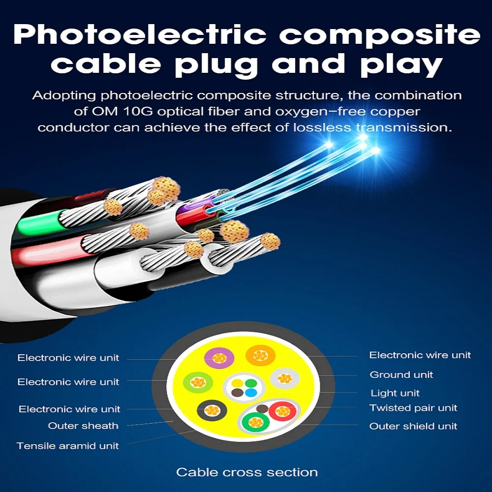 1:Ultra HD 8K@60Hz for Long Distance Transmission,The Cable Optical Fiber Cable is Ultra HD 8K@60Hz(4K@144Hz)provides long distance Transmissions and no Signal Missing,Support 3D visual effects,Supports up to 144Hz refresh rate,Fiber Optical Cable,with farther and clearer data Transmissions,Providing an unprecedented HD viewing experience