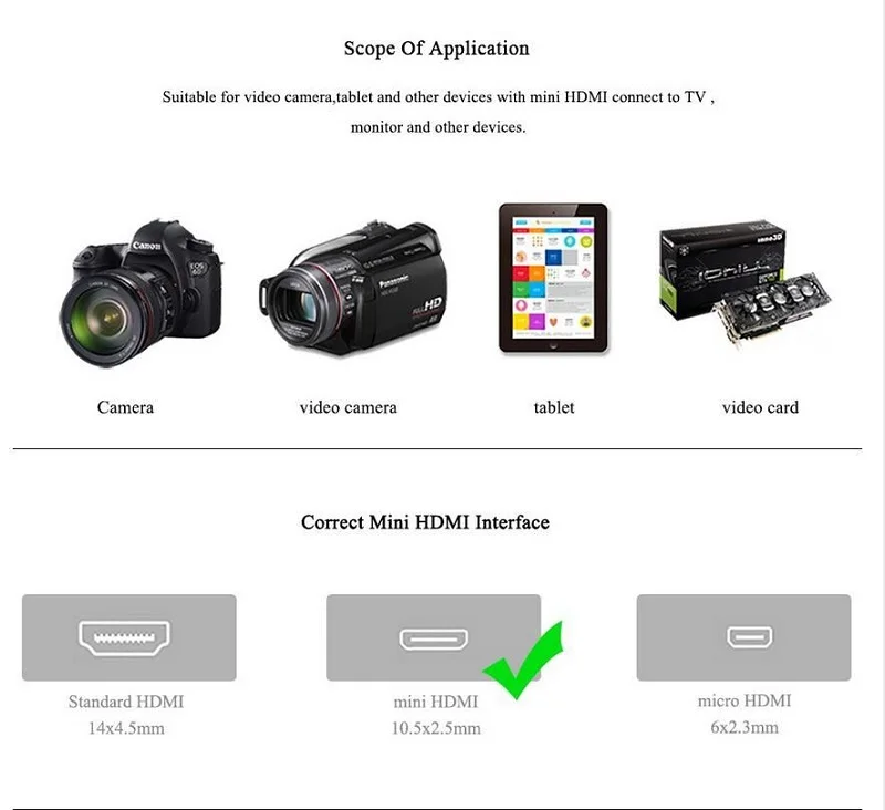 Lungfish High Speed Mini HDMI to HDMI Cable Male to Male 1080P HDMI Cable For TV/display/tablet/notebook/camera A-C HDMI Cable