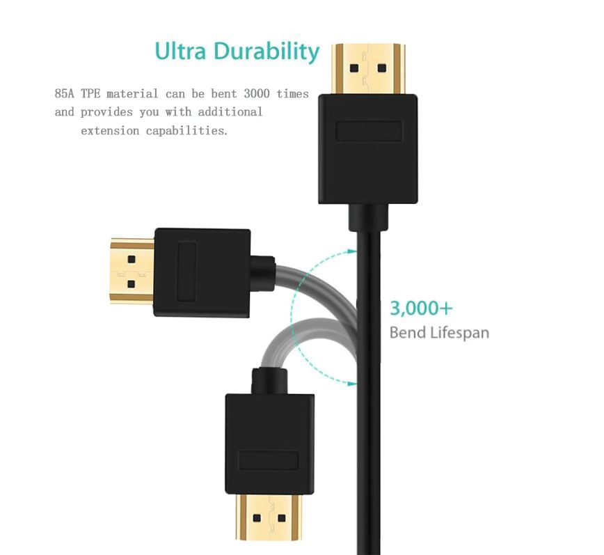 Lungfish Flat HDMI Cable Gold Plated Plug HDMI 2.0 4k 1080p 3D 0.3m 1m 1.5m 2m 3m 5m 7.5m 10m 15m for HD TV Laptop PS3 Computer