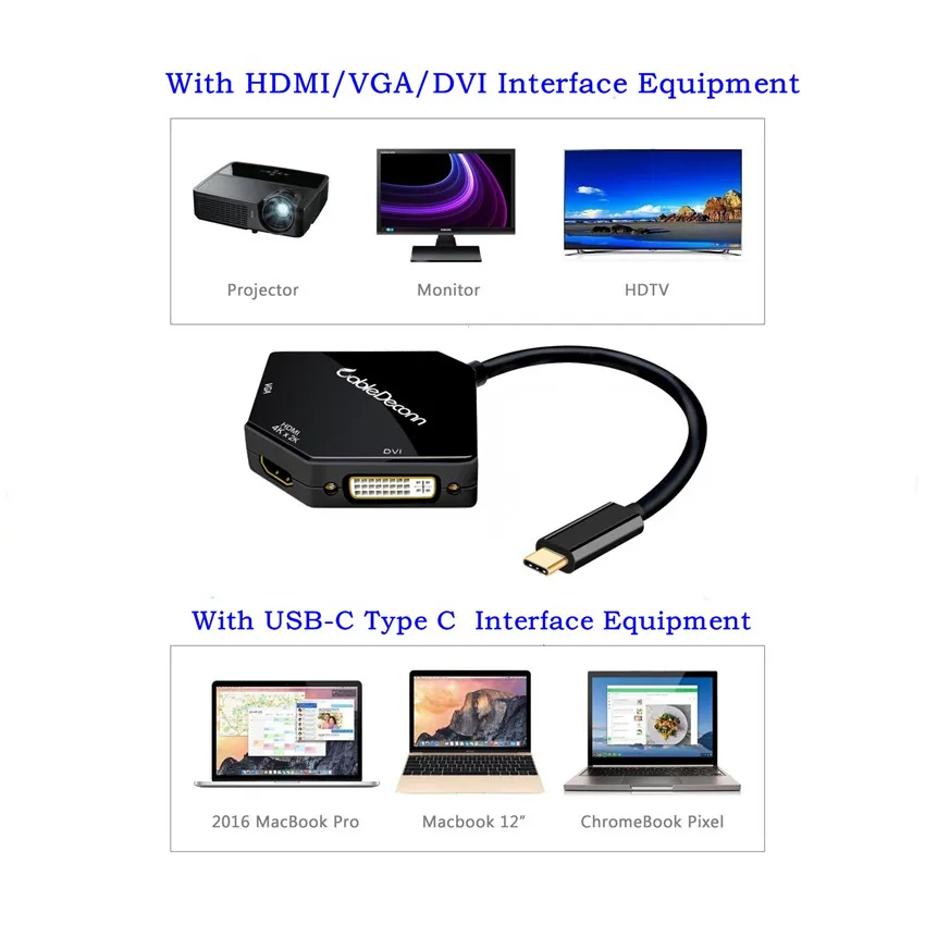 Best Price Comparison With type-c to VGA HDMI DVI Multifunction Converter USB C to hdmi 4k Adapter usb 3.1 hub for Smartphone Samsung laptop Macbook Dell